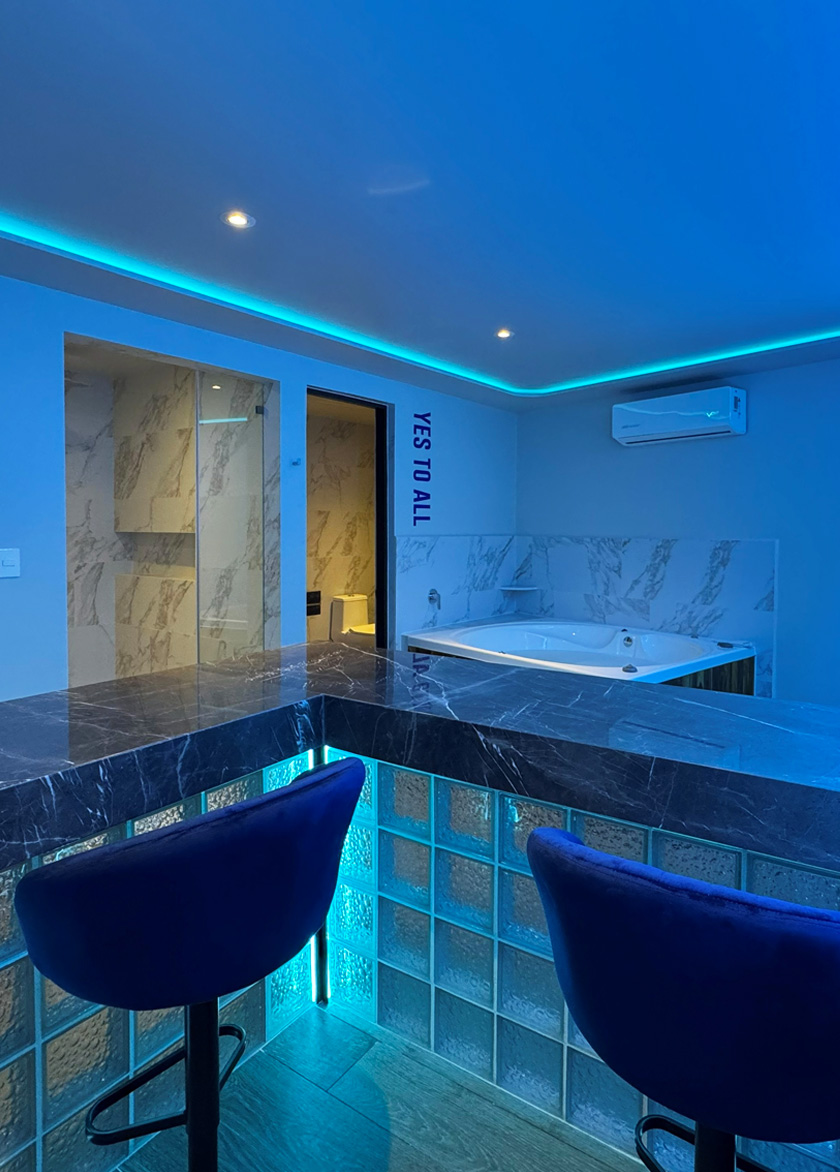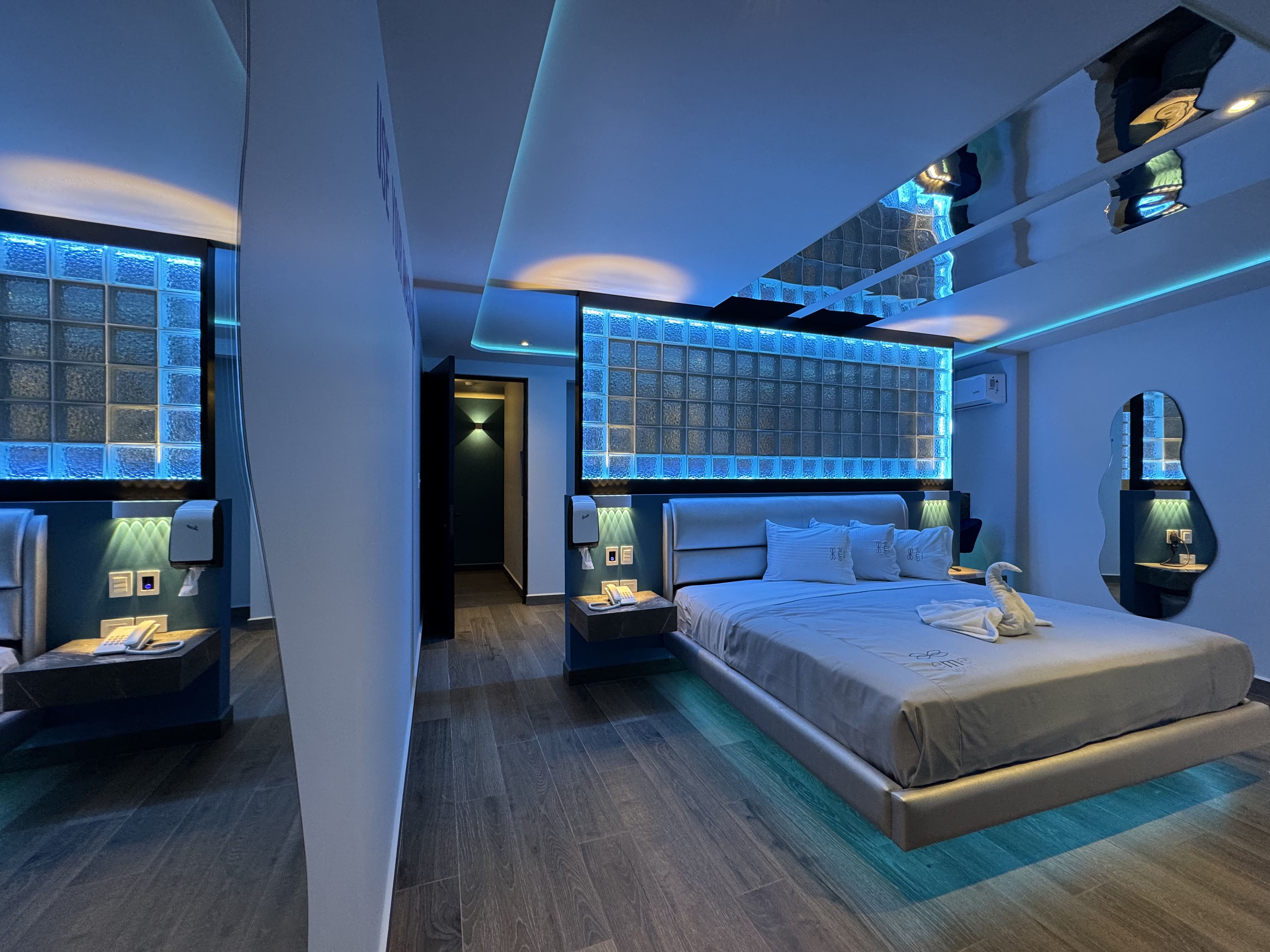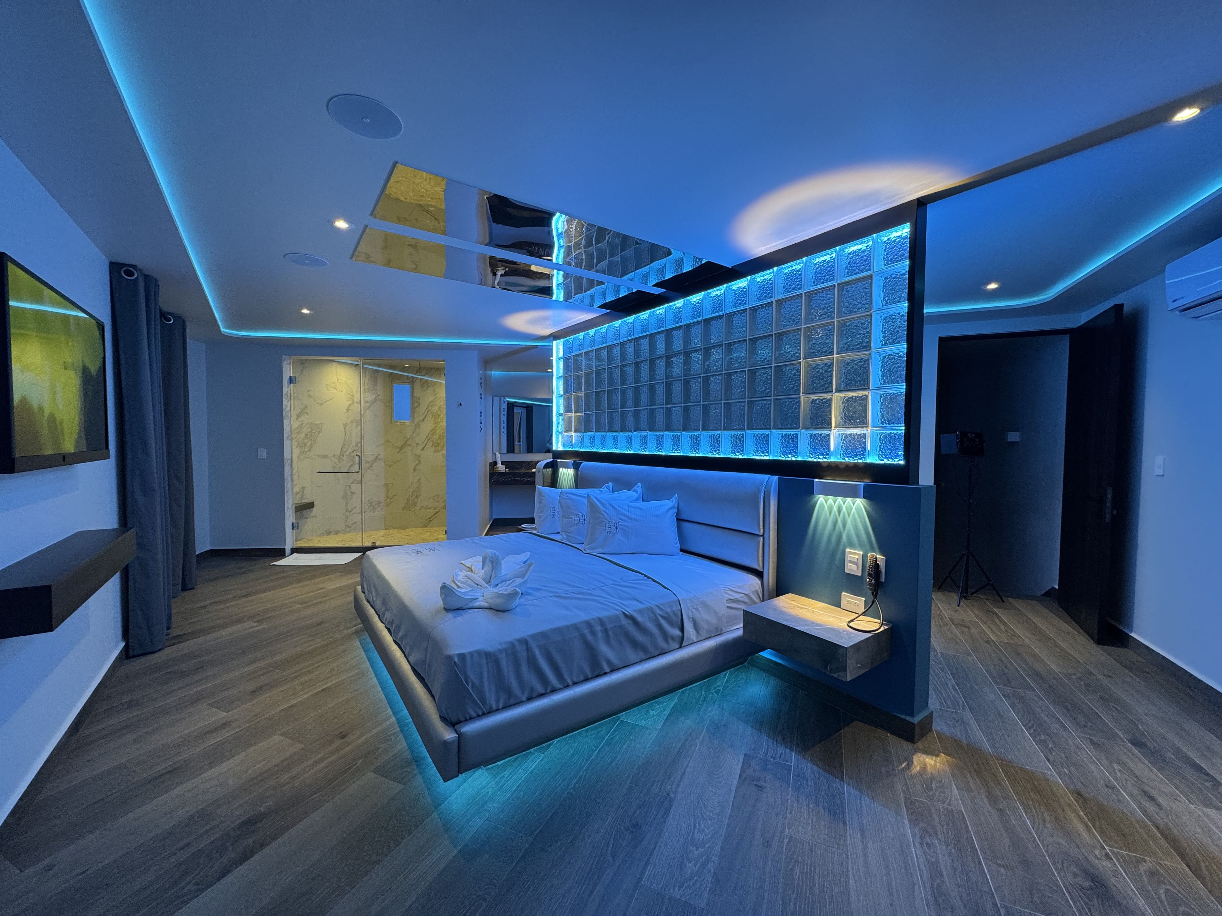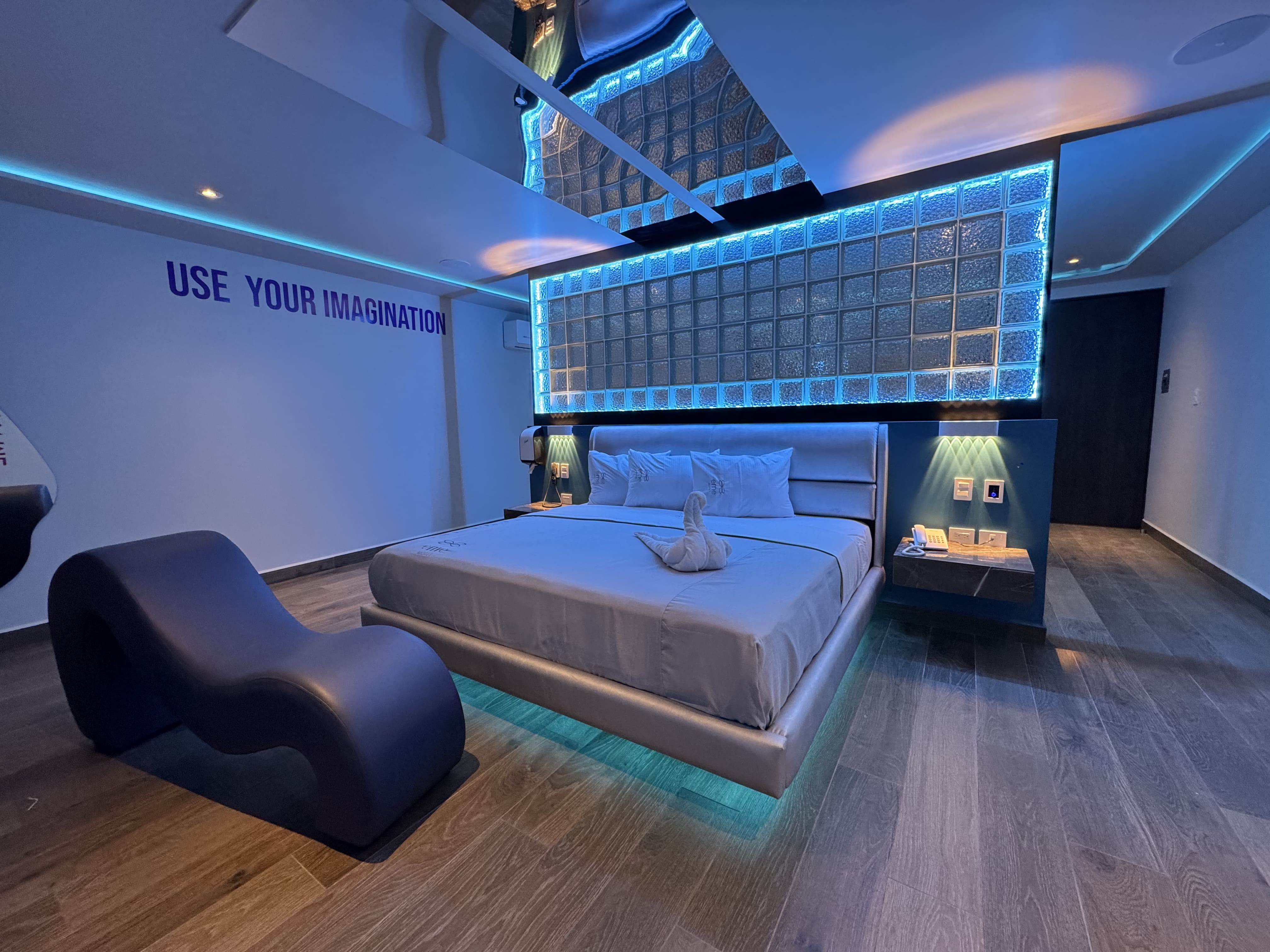 Nuestras suites fusionan confort, seducción y elegancia. Cada suite cuenta con mobiliario de lujo, iluminación ambiental controlada y amenidades eróticas, diseñadas para proporcionar el escenario ideal para una cita de pasión sin limites.