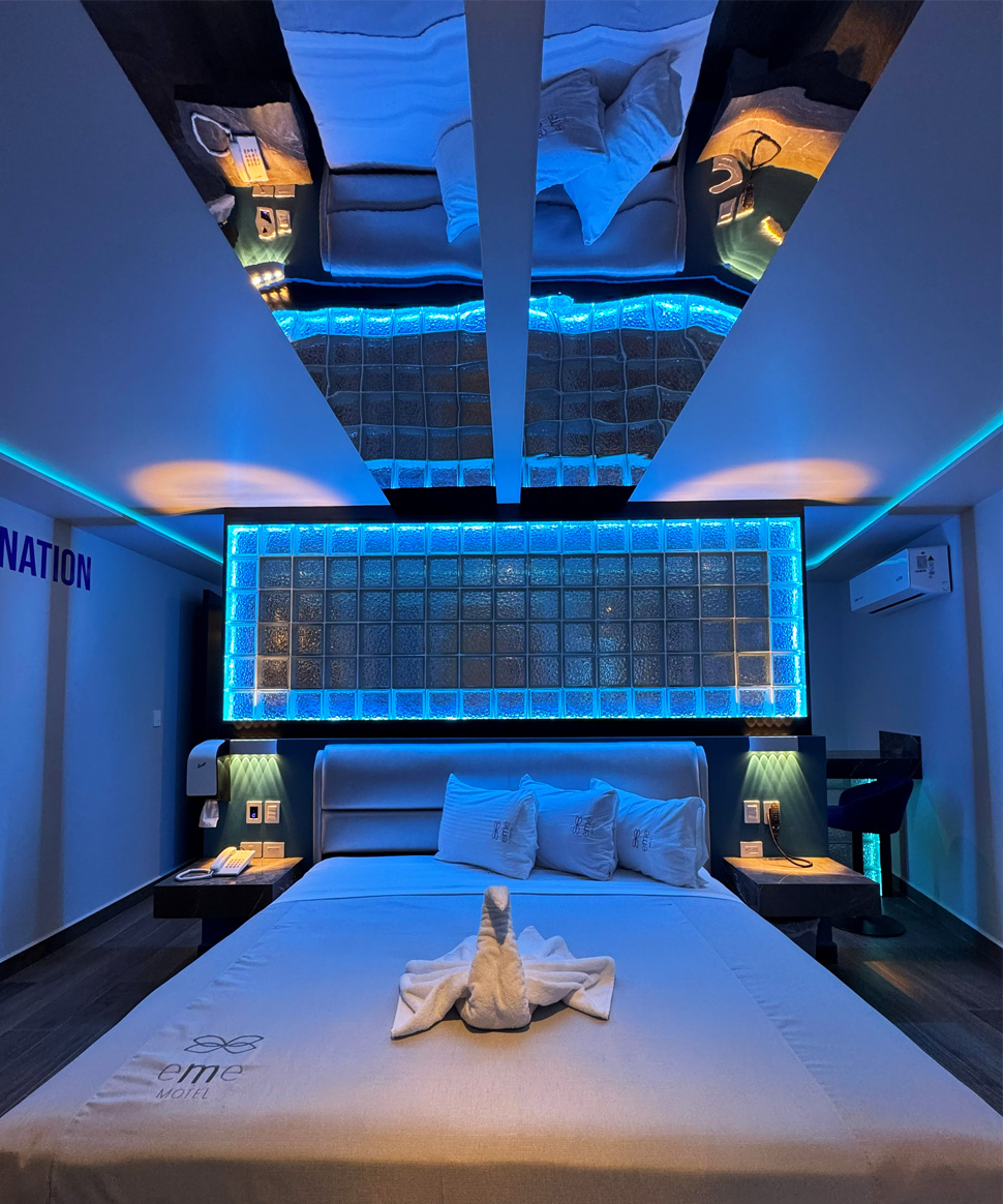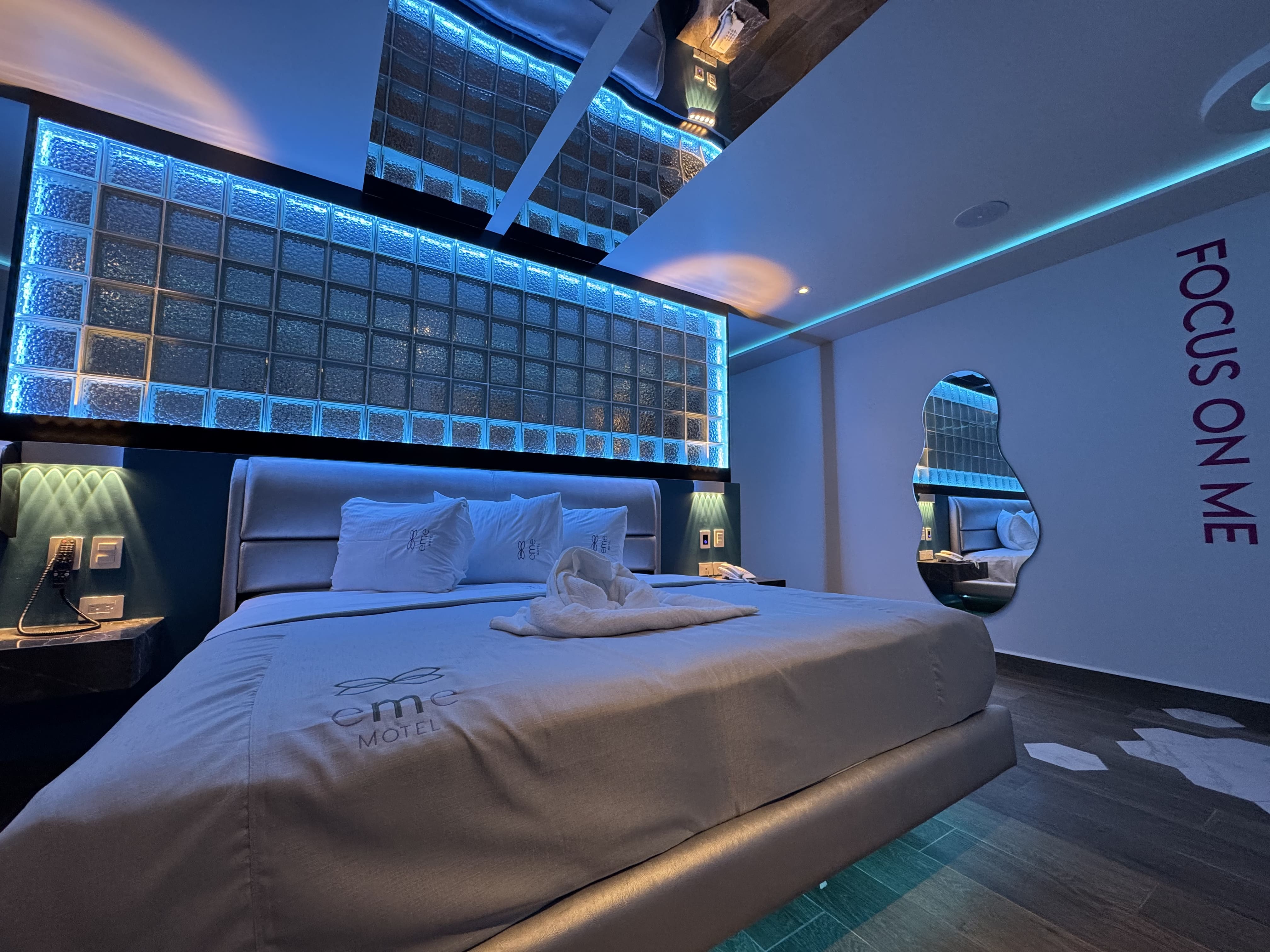 Bienvenido a Motel Eme, el lugar donde el deseo se rediseña en el corazón de Puebla. Nos enfocamos en ofrecerle una estancia excepcional, fusionando elementos eróticos modernos con una elegancia moderna. Nuestras suites están cuidadosamente diseñadas ser el escenario perfecto de tus fantasías, garantizando discreción, privacidad y éxtasis en cada visita.